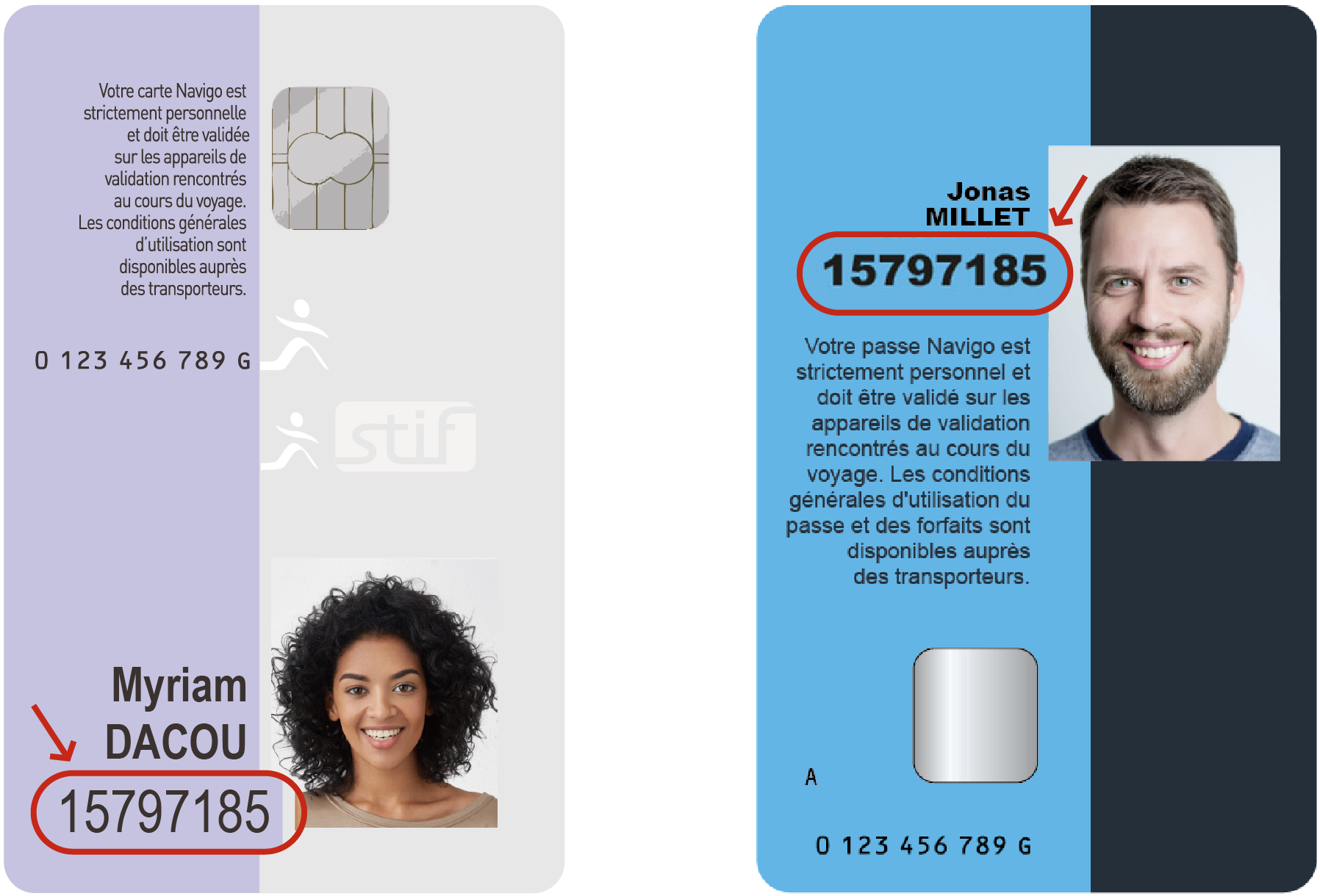 N° Navigo : N° figurant sur votre passe au dessus de votre photo ou en dessous de votre nom